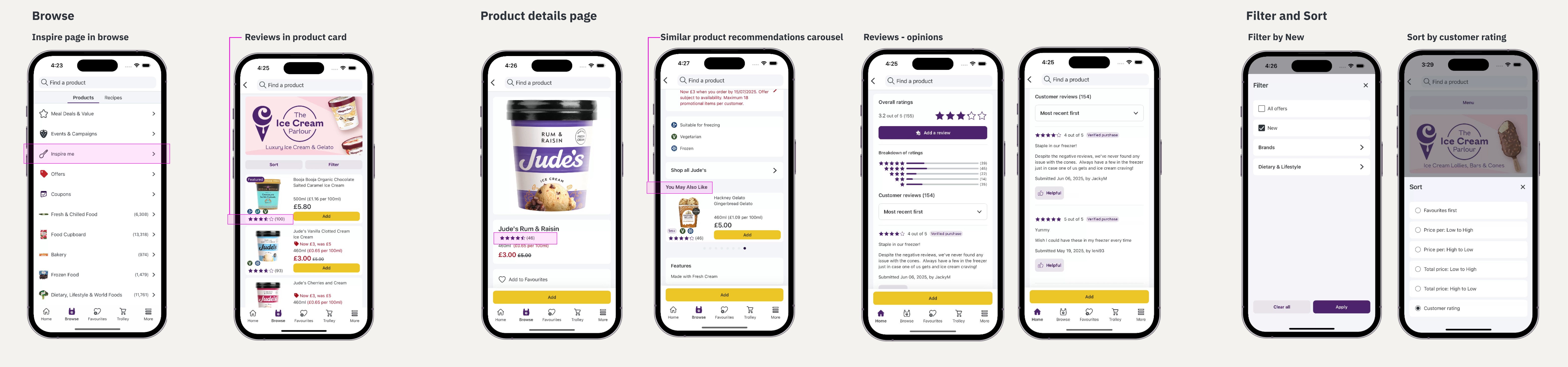The introduction of social proof features helped surface new products in moments where customers were making decisions. By highlighting what other shoppers were buying, rating highly, or searching for, we were able to increase visibility and trust around unfamiliar products without disrupting the existing shopping flow.