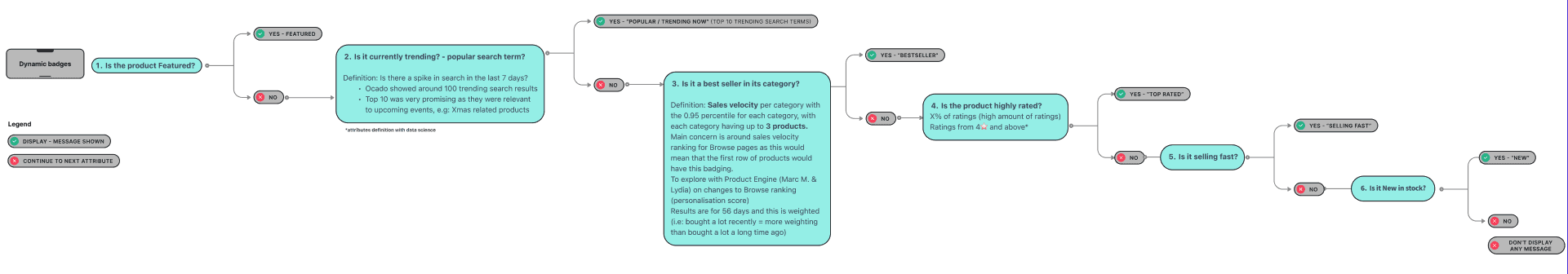 Dynamic badges are used to highlight items based on social attributes that enhance product discovery and trust to try new items.
